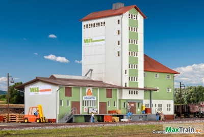 Vasuti épület állvánnyal, melléképülettel (összerakós)