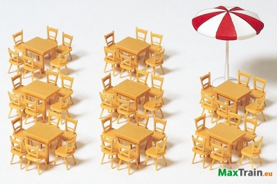 Asztalok (8db), székek (48db) és egy ernyő